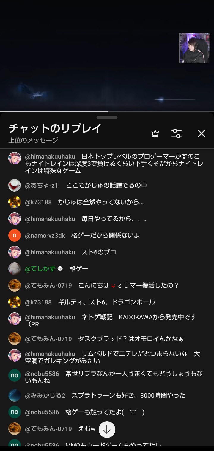 | … | 5726/01/29(木)11:48:14No.1396887547+>>ここの配信見てても一人でずっとコメントしてる人いてうわってなることある |