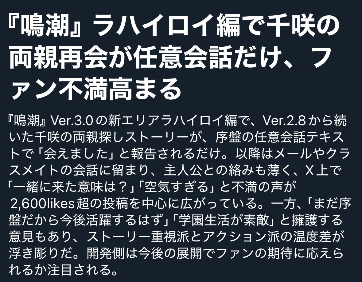 | … | 4626/01/29(木)12:12:43No.1396892873+潮はプレイヤーのネット上での活動だけは滅茶苦茶頑張ってるから… |