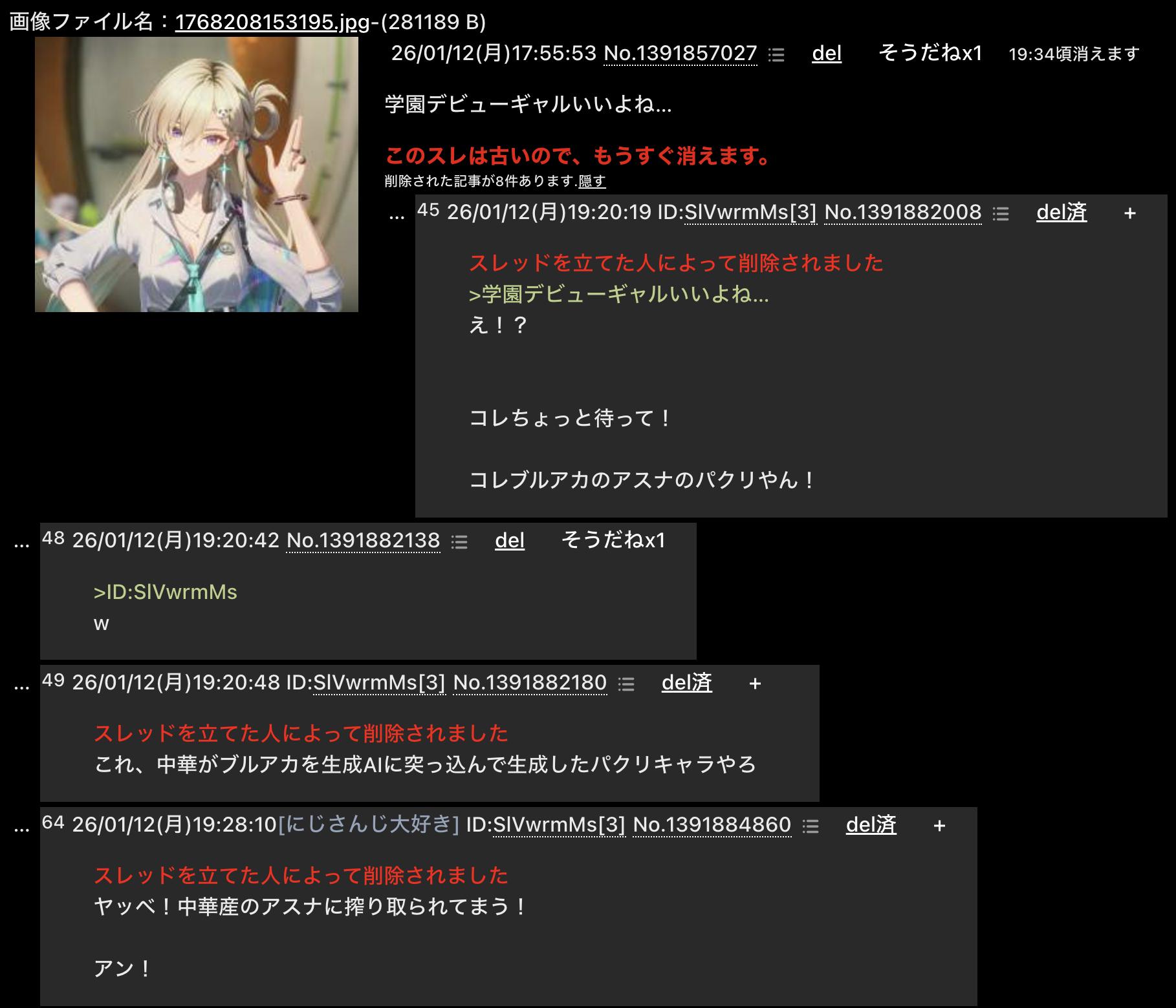| … | 8026/01/29(木)12:19:23No.1396894783+信じてるふりをしてる荒らしのレスならいいんだけど |