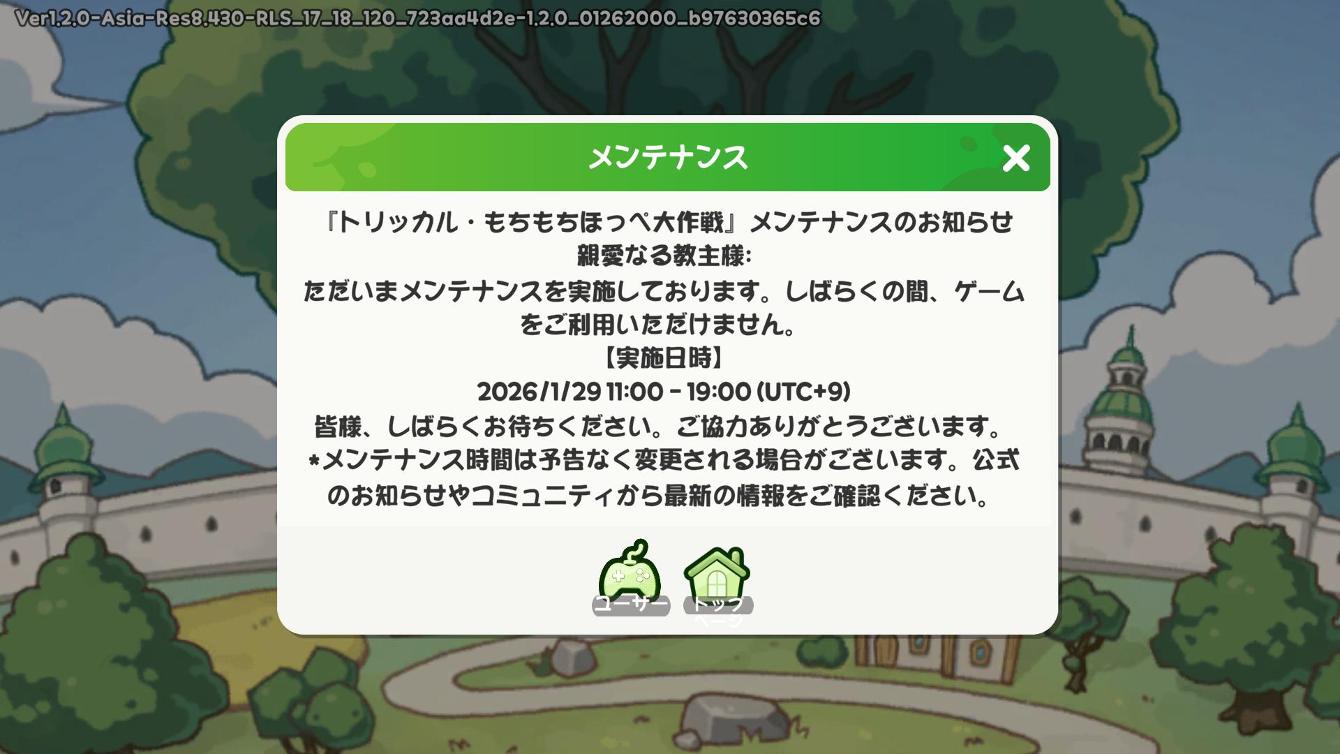 | … | 4326/01/29(木)16:46:05 ID:EYy76QU6No.1396955723そうだねx1>メンテ終了まで残り2時間14分… |