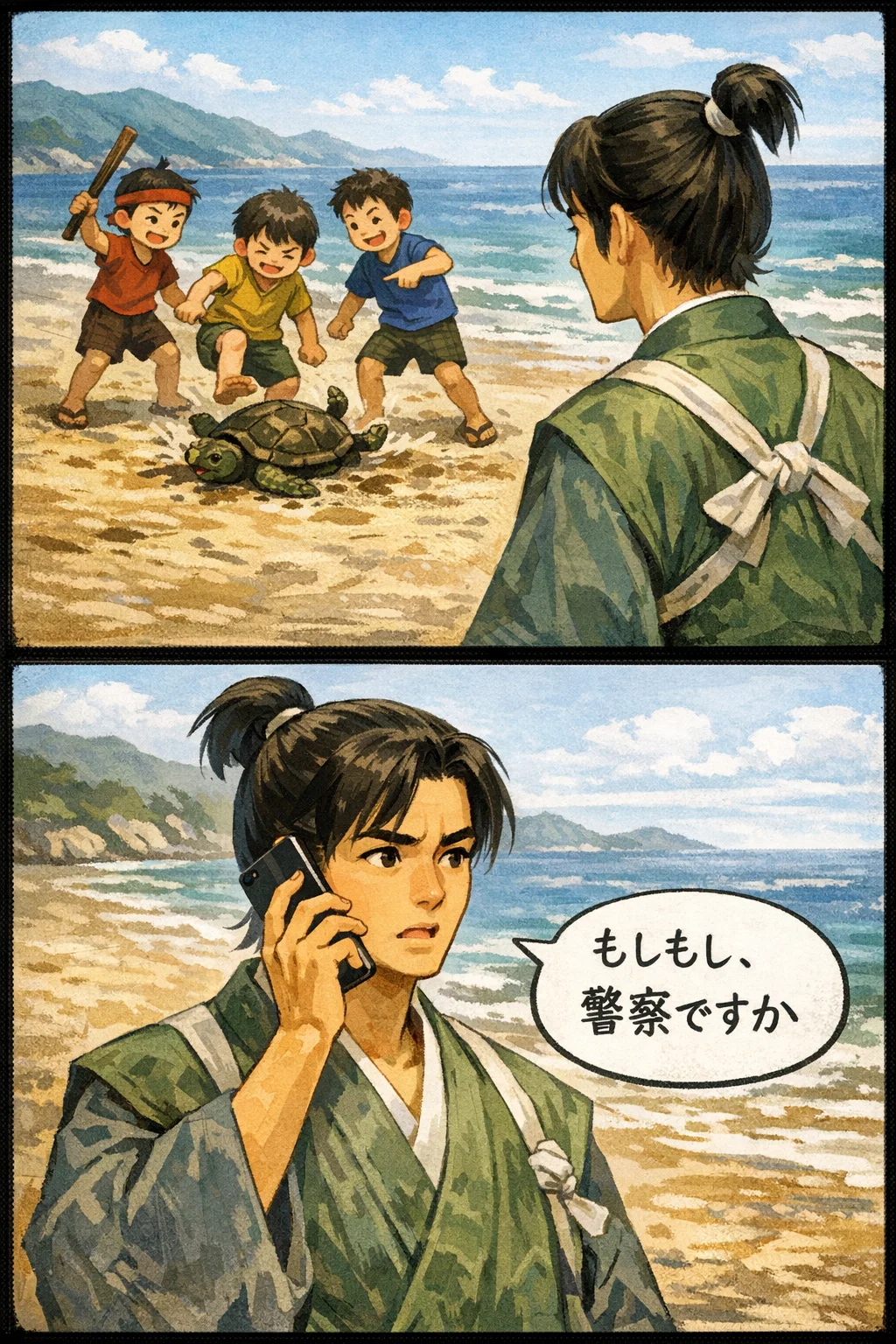 | … | 2926/01/29(木)19:18:35No.1396993522そうだねx4>>>プロンプト:浦島太郎の物語を漫画にしてください >>同じプロンプトで試してみた >fu6229297.jpg 厄介払いされてる... |