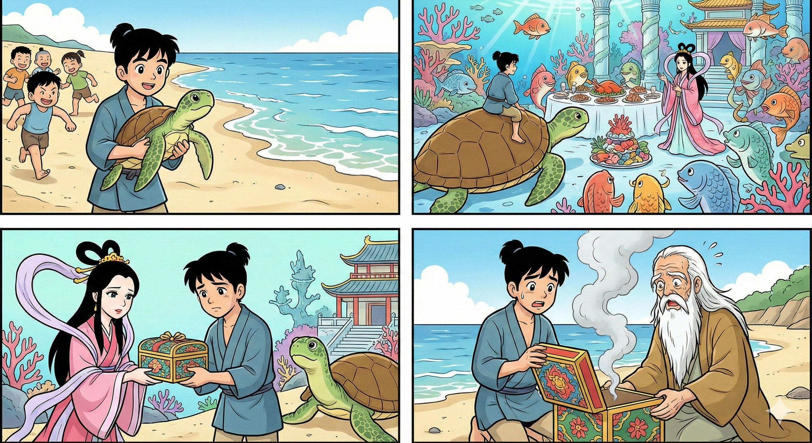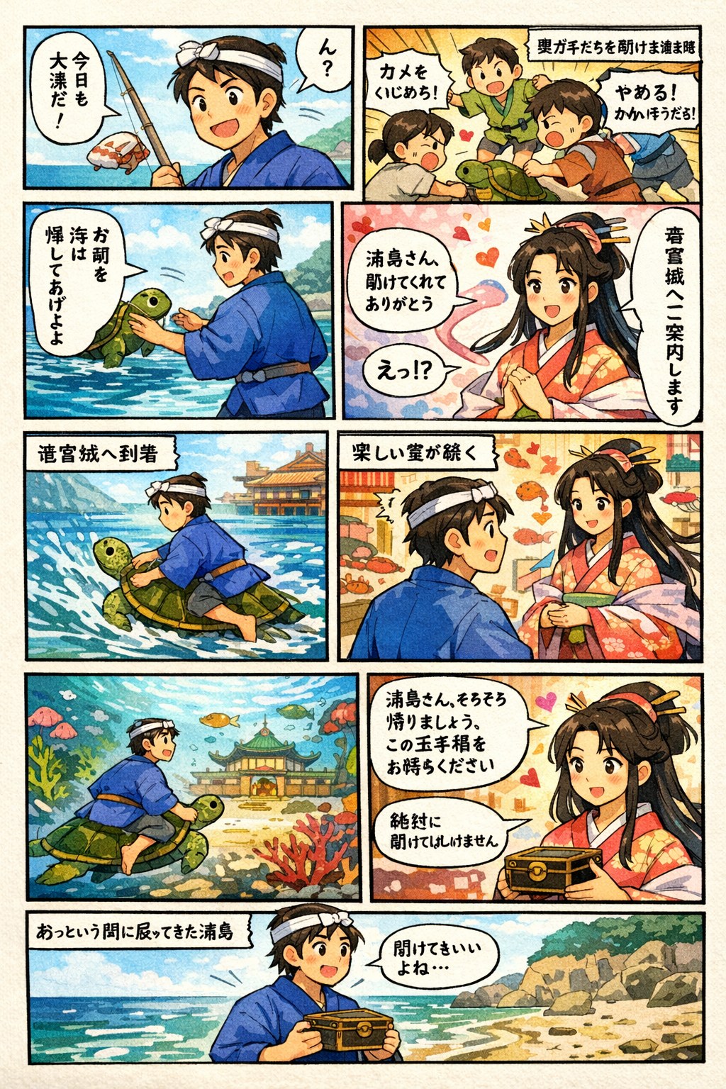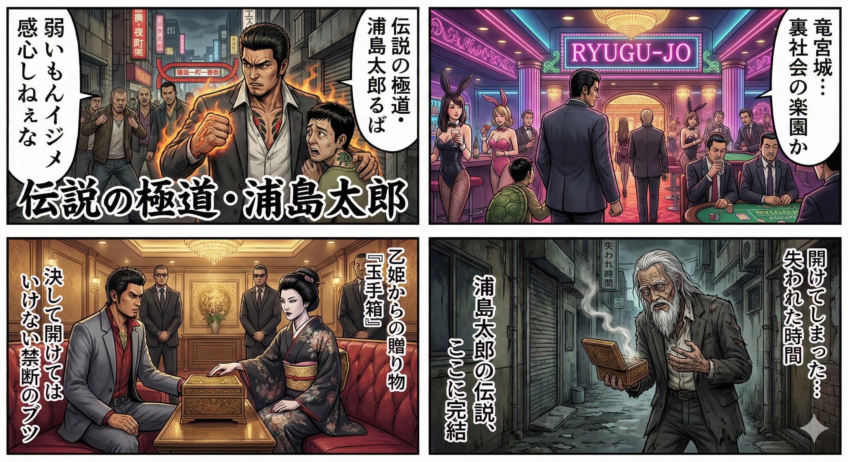 | … | 2526/01/29(木)19:16:17No.1396992837+>>プロンプト:浦島太郎の物語を漫画にしてください >同じプロンプトで試してみた fu6229297.jpg |