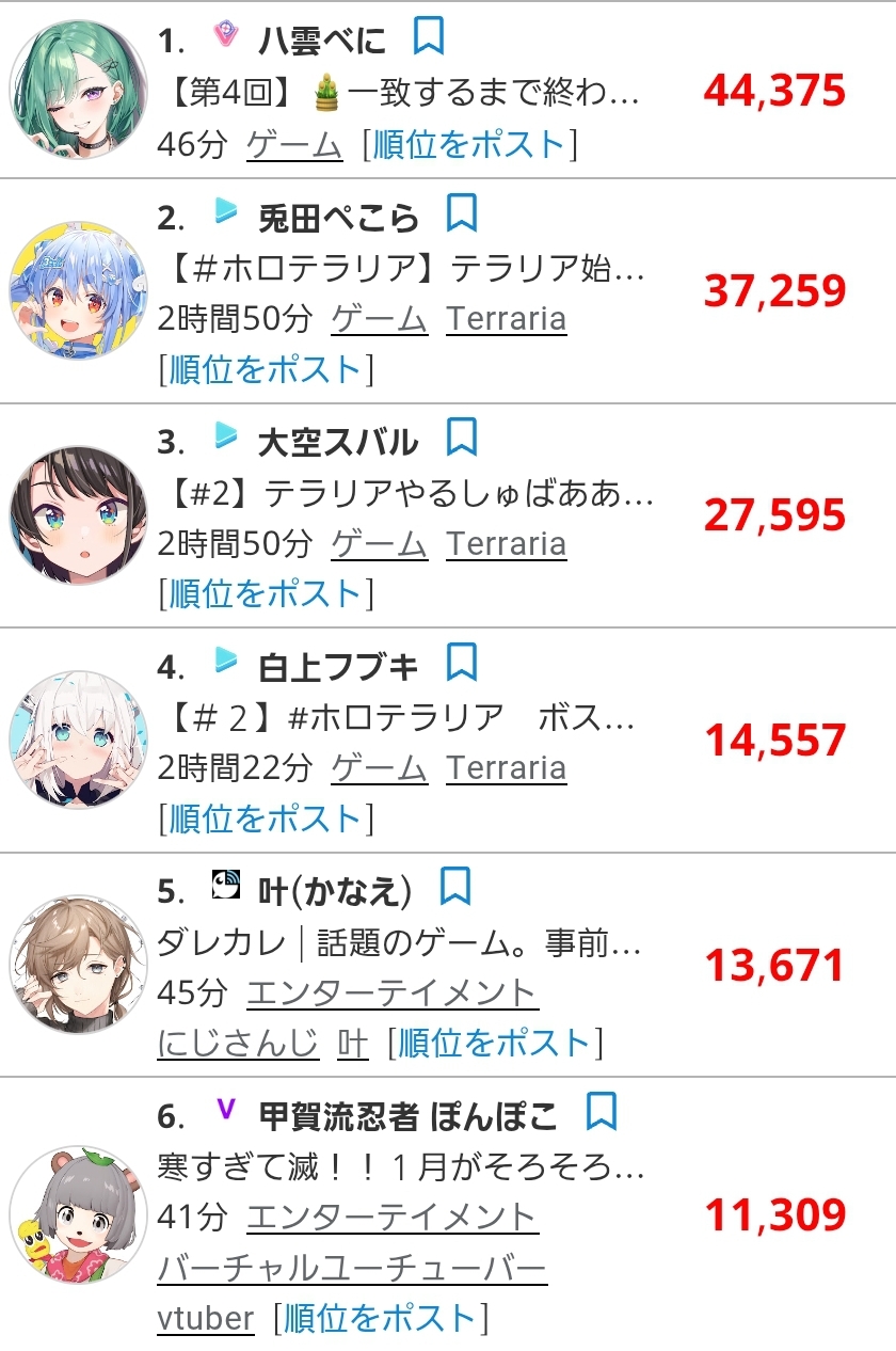 >ぶいすぽもホロも箱内企画で数字出してんのににじさんじ情けなさすぎるだろ