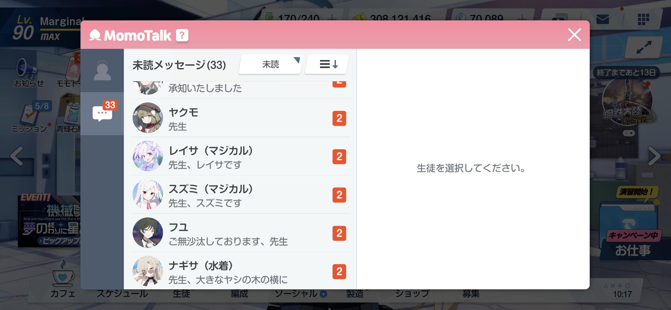 | … | 7726/01/30(金)09:15:36No.1397151102+ふと思ったけどモモトークで芝生やしてくる生徒いたっけ |