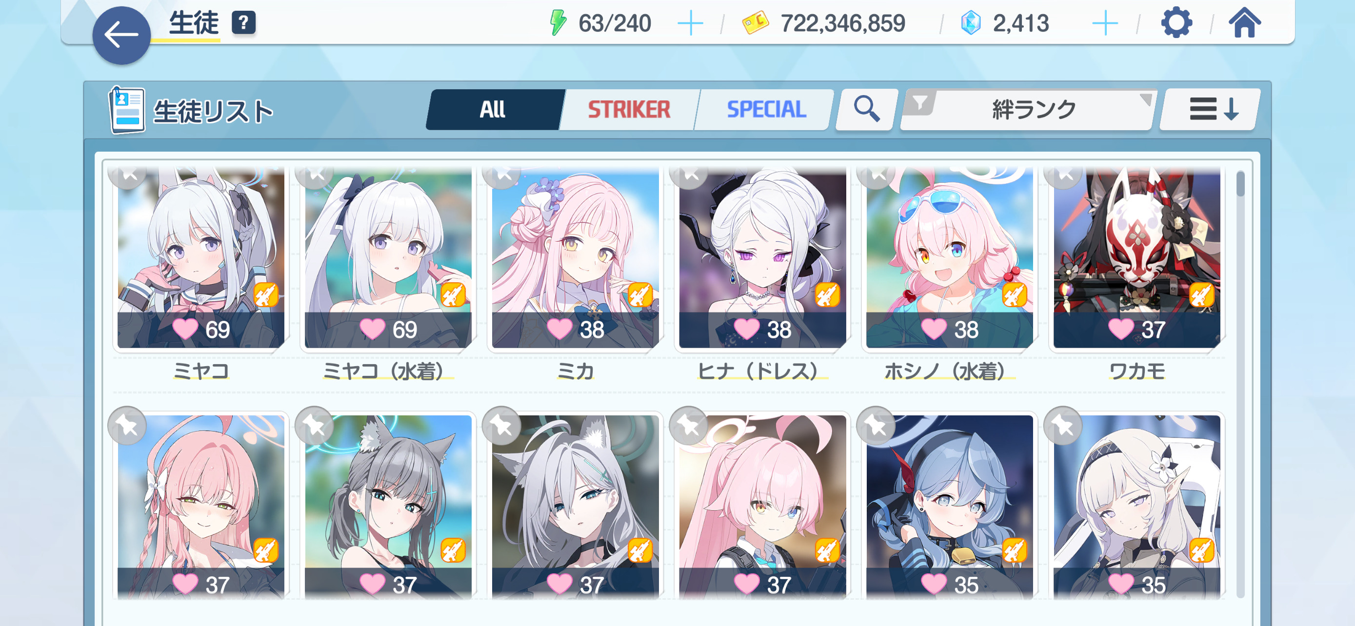 | … | 97526/01/30(金)13:11:44No.1397200709+絆は30くらいあれば十分かな? 90以上アル様だともっと楽になるならせっかくだし他人のお気に入り生徒を使いたい |