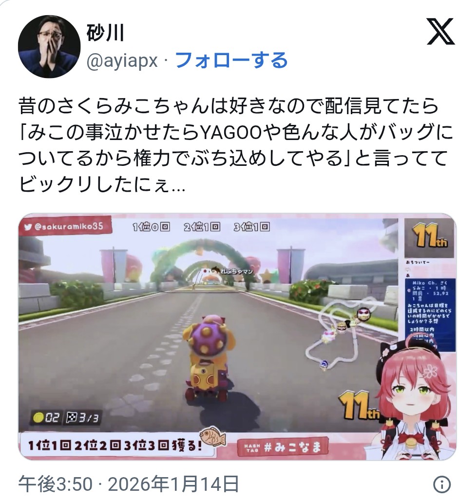 | … | 2926/01/30(金)13:32:06No.1397205519そうだねx1さくらみこ、さすがに罪罰罪なんだよな。 |