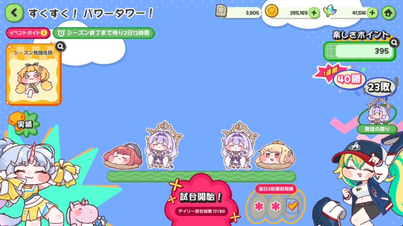 | … | 69026/01/30(金)18:03:22 ID:u7Ab6Y12No.1397260086+>もちもちタワーバトル…全く勝てません… 回転を使って隙間にいれるのとデカいのきたら即もちほっぺを交換させるでまあまあ勝てたにゃ |