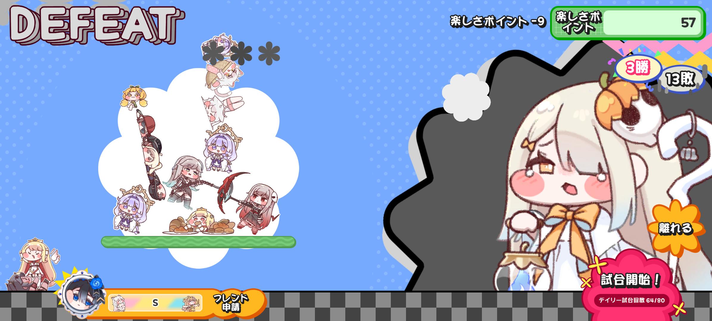 | … | 1326/01/30(金)15:39:46 ID:TtVdu6tYNo.1397231912+タワーバトルで上手く置けた時にエール贈り合ってたらフレンド申請来たにゃん! |