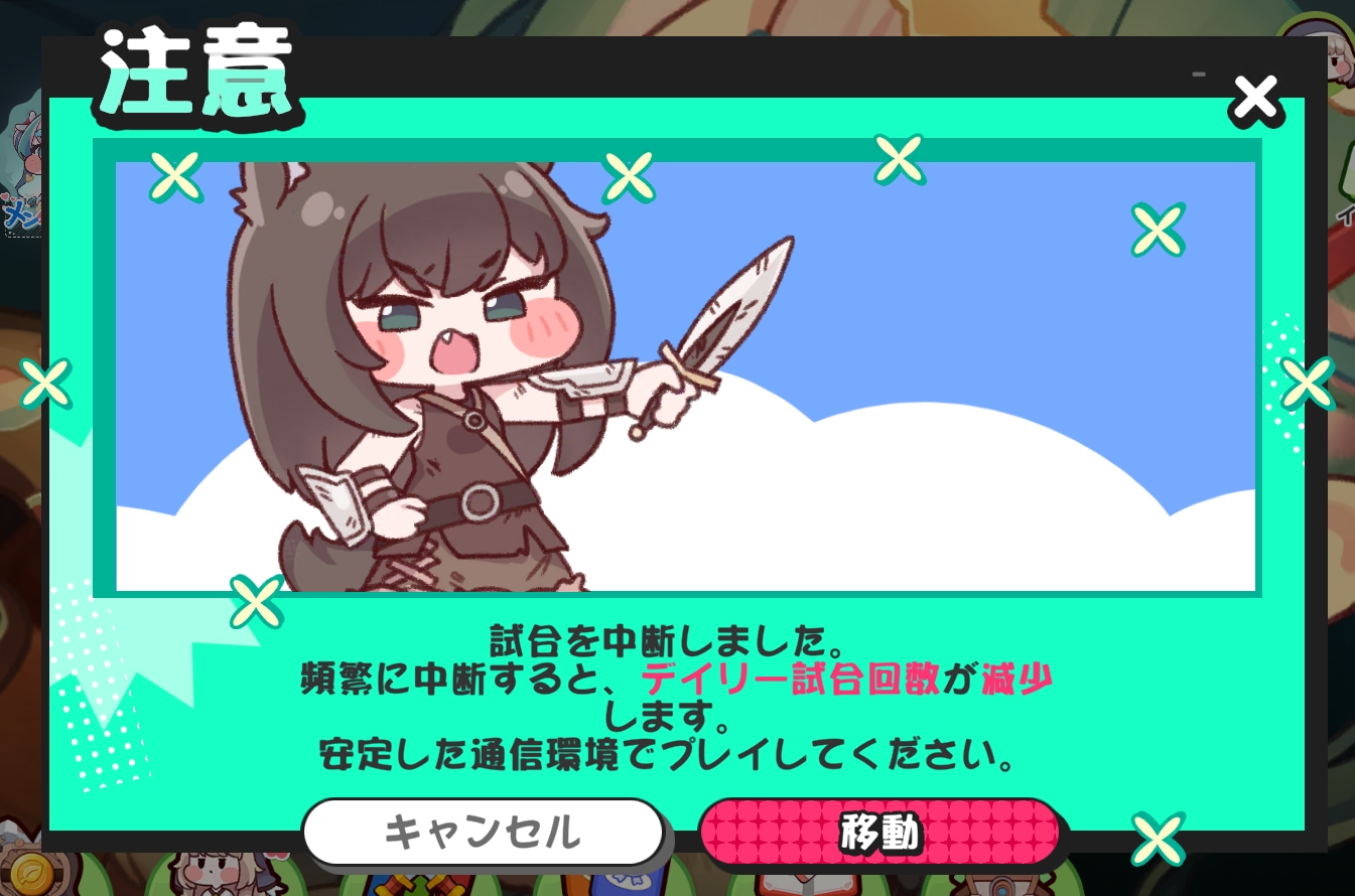 | … | 63626/01/30(金)17:49:19 ID:5QcKS4eYNo.1397256625+>切断一回で即ペナルティって訳じゃないみたいにゃん 何度も繰り返すと問答無用で0にされるって話にゃん警告出るのとは別で対戦中の切断が対象らしいにゃん |