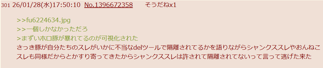 | … | 3026/01/30(金)19:53:14No.1397293058そうだねx4なければmayの避難騒動の時みたいな荒らされ方できないと思うけど |