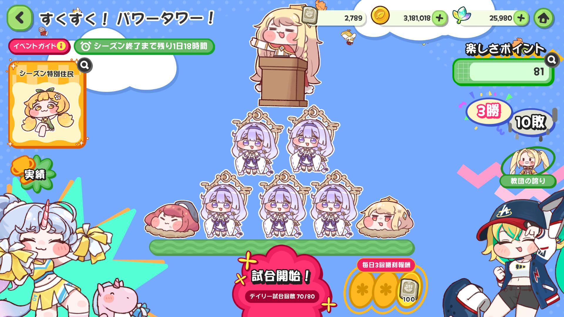 | … | 53026/01/31(土)11:30:10 ID:4EVo9LnoNo.1397478102+タワーバトルがきてから明らかに盛り上りが違うにゃん |