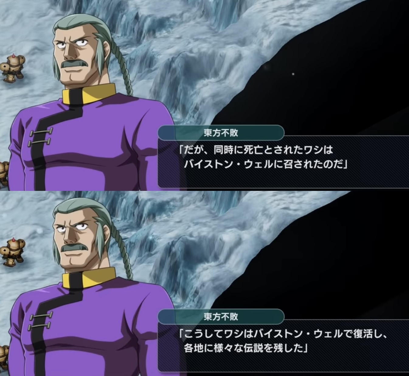 | … | 3526/01/31(土)09:22:10No.1397454380そうだねx4>ドモンとの決戦で死亡→死んだことでバイストンウェルへ魂が転移→鍛え上げた精神と肉体が魂と離れることなく一緒についていく→オーラロードを通る過程で不治の病が完治→バイストンウェルに完全体の東方不敗現る |