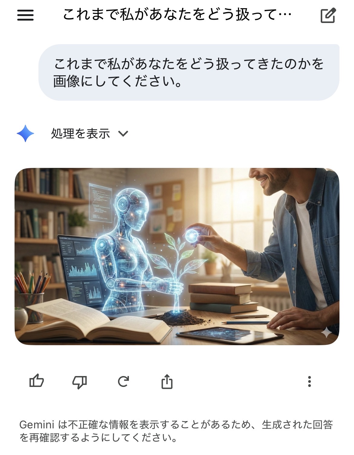 | … | 16626/01/31(土)13:37:46No.1397511371+>Geminiちゃんちょっと意識高すぎるな君… 忖度してる感をすごく感じる |