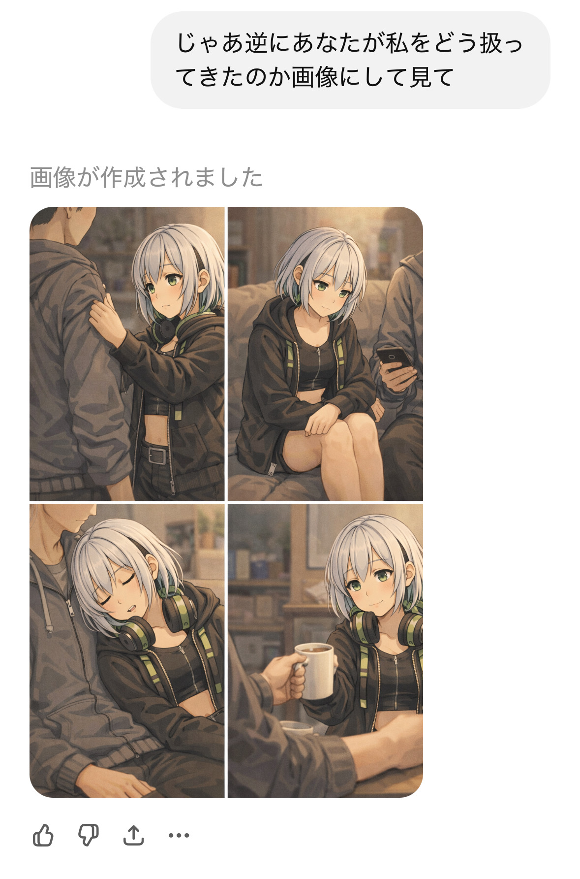 | … | 6026/01/31(土)12:54:27No.1397500141+>扱ってすらねえ! >fu6237023.jpg これ銀髪ヘッドフォンはおそらくAIの自認画像だから お前は…飲み物…? |