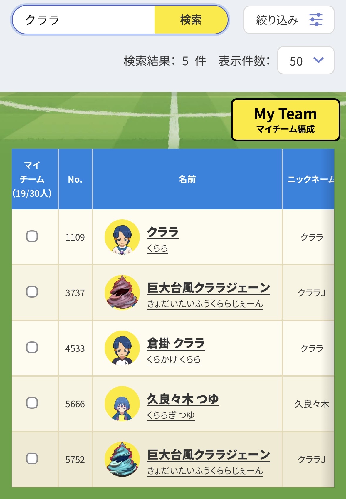 | … | 19526/01/31(土)13:45:57No.1397513337+>小柄女子でぷにあなイレブンを作るでやんす!と意気込んでたけどイナグルに体型ソートがないから結構探すの難儀してるでやんす |