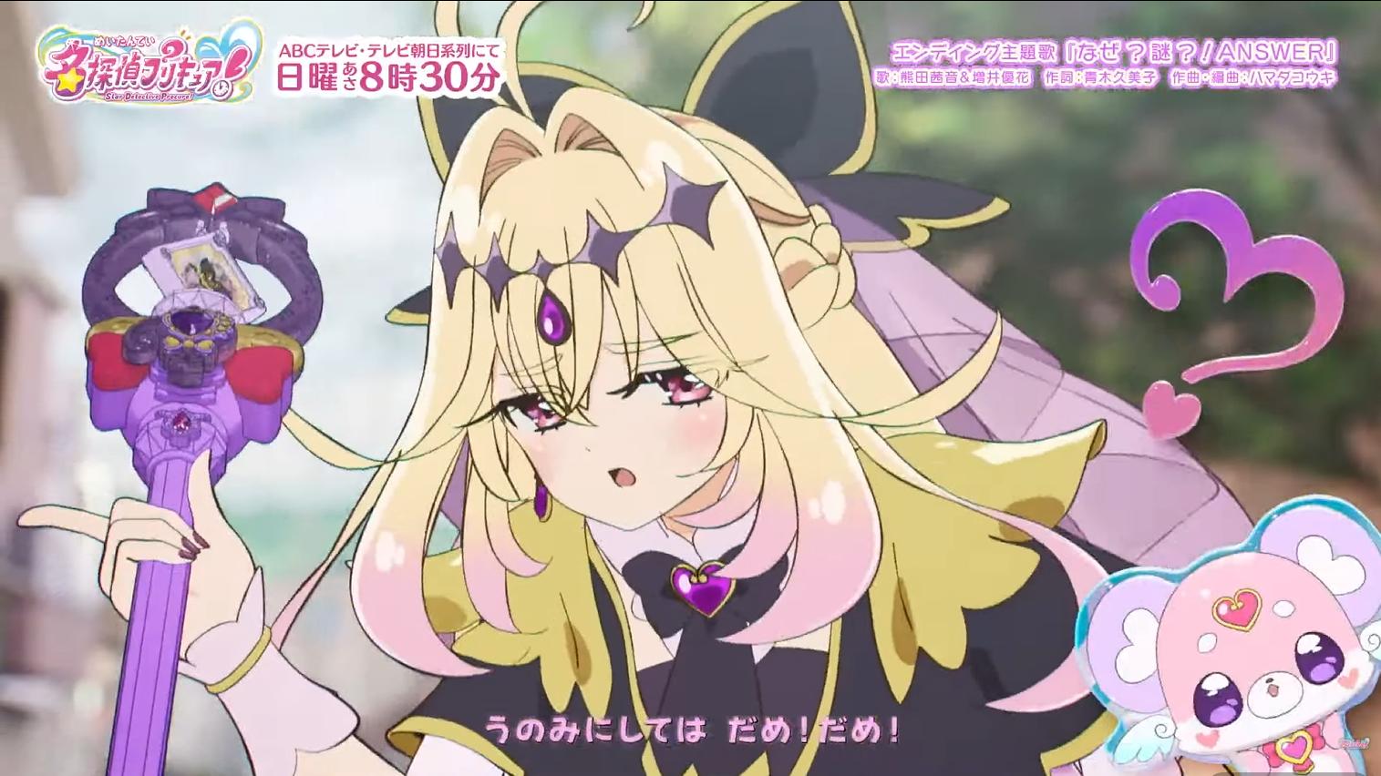 | … | 39026/01/31(土)18:10:20No.1397580716そうだねx3>第1話「誕生!名探偵プリキュア!」は、14歳の誕生日をむかえ、母と家に帰ってきた明智あんなは、自分の部屋にペンダントが置かれていることに気づく。母からの誕生日プレゼントだと思い込んだあんながペンダントを身につけると、突如謎の妖精があらわれた。 |