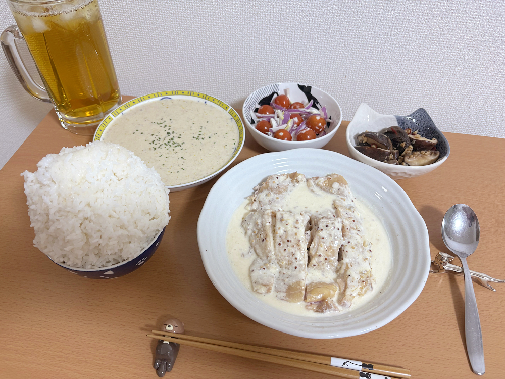 | … | 16126/01/31(土)19:30:55No.1397606249+>普通にチキンソテーを作った後生クリームとマスタードを加えて温めるだけ |