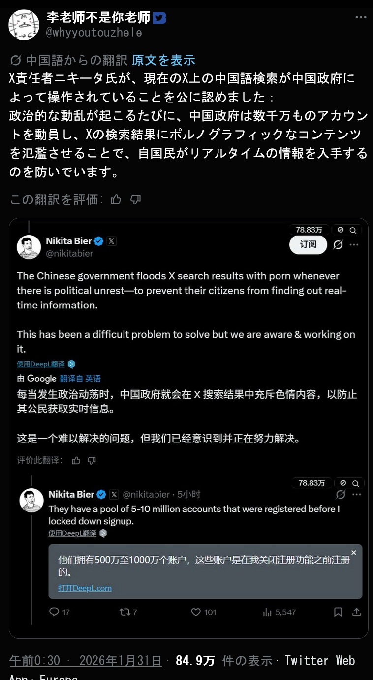 | … | 2026/01/31(土)19:44:32No.1397610947+中国政府がエロじゃない |