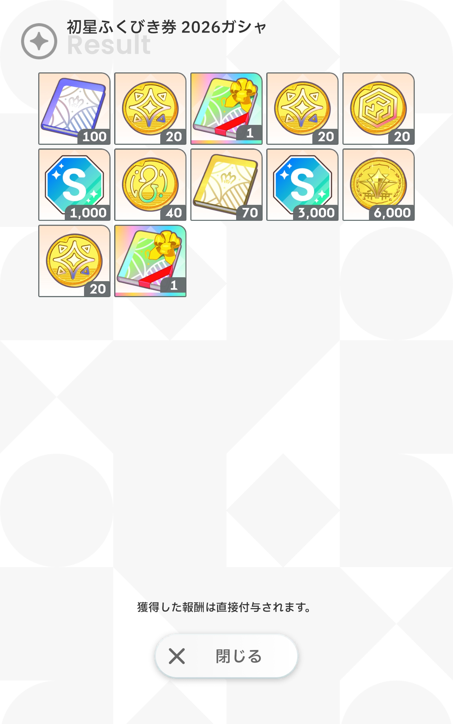 | … | 5026/01/31(土)22:03:52No.1397661421+福袋金に入ってる福引2000枚で報酬一通り引けましたわ |