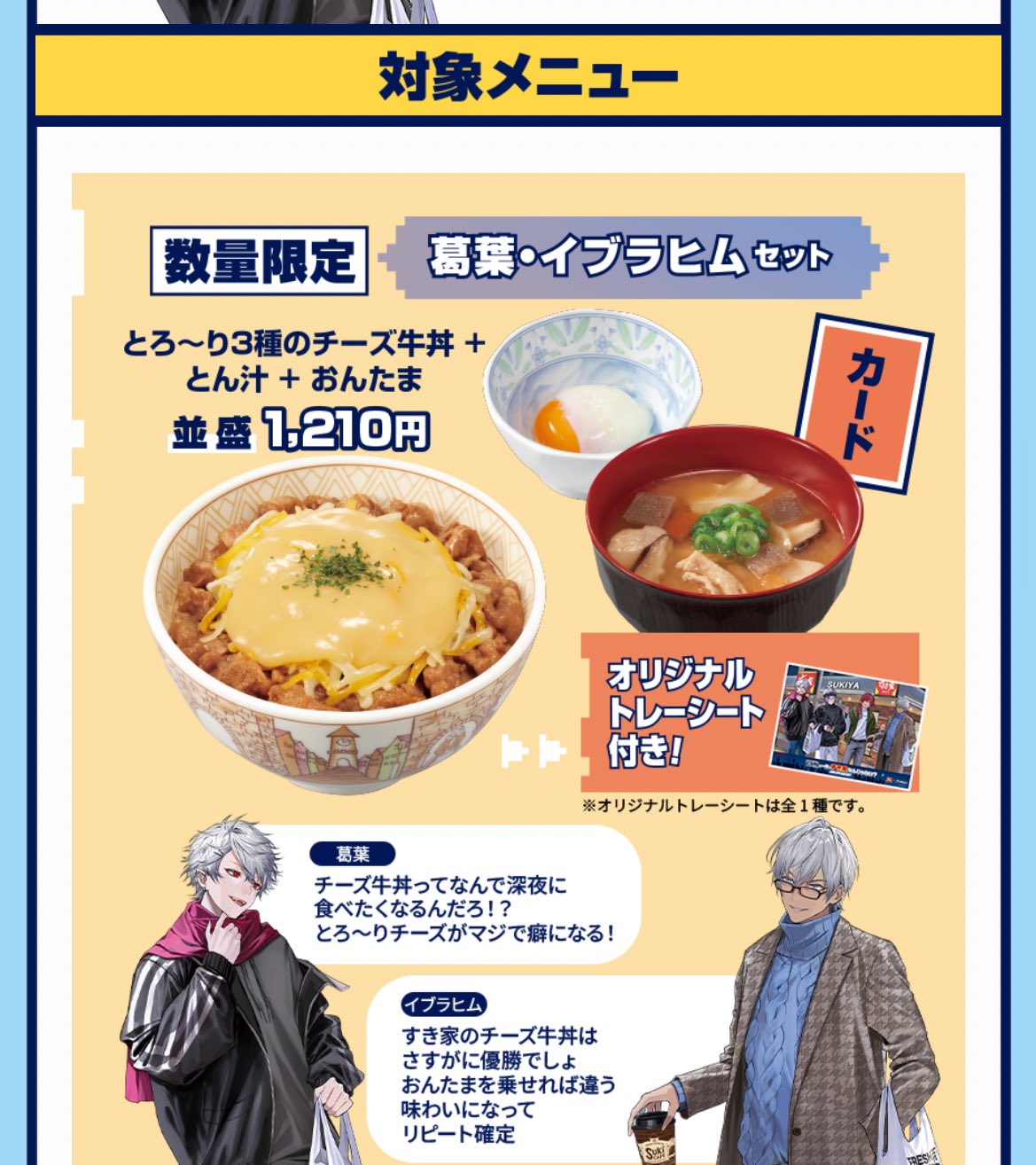 | … | 24826/01/31(土)23:27:46No.1397692783+>>fu6239587.jpg >>チー牛食べていいよ >俺の勘違いでなければ単に人気メニューをコラボセットにしただけに見える… あとパッと見て思うのはものすごくコストの低そうなコラボだなってことだな 1枚絵ひとつを切り貼りしてグッズも全部ペラいやつだしだいぶ安上がりそう |