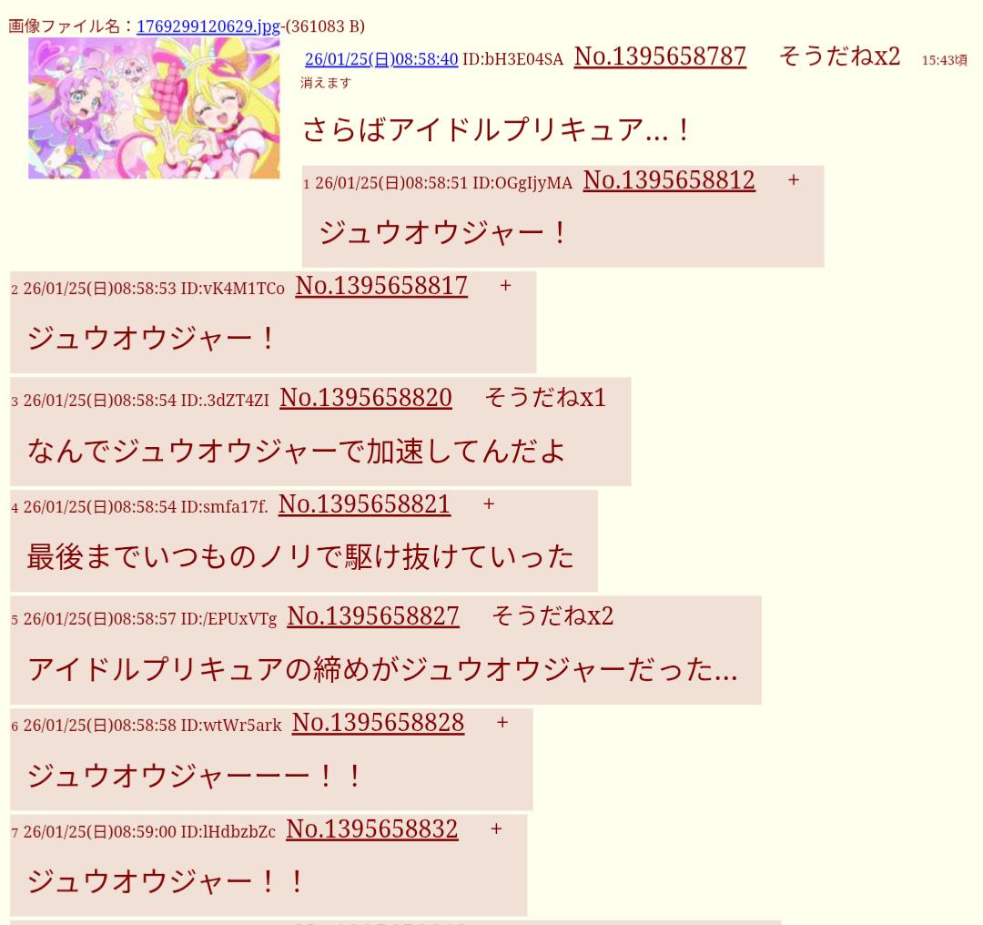 | … | 2026/02/01(日)08:35:11 ID:WOoY15hsNo.1397769604+ジュウオウジャー!! |