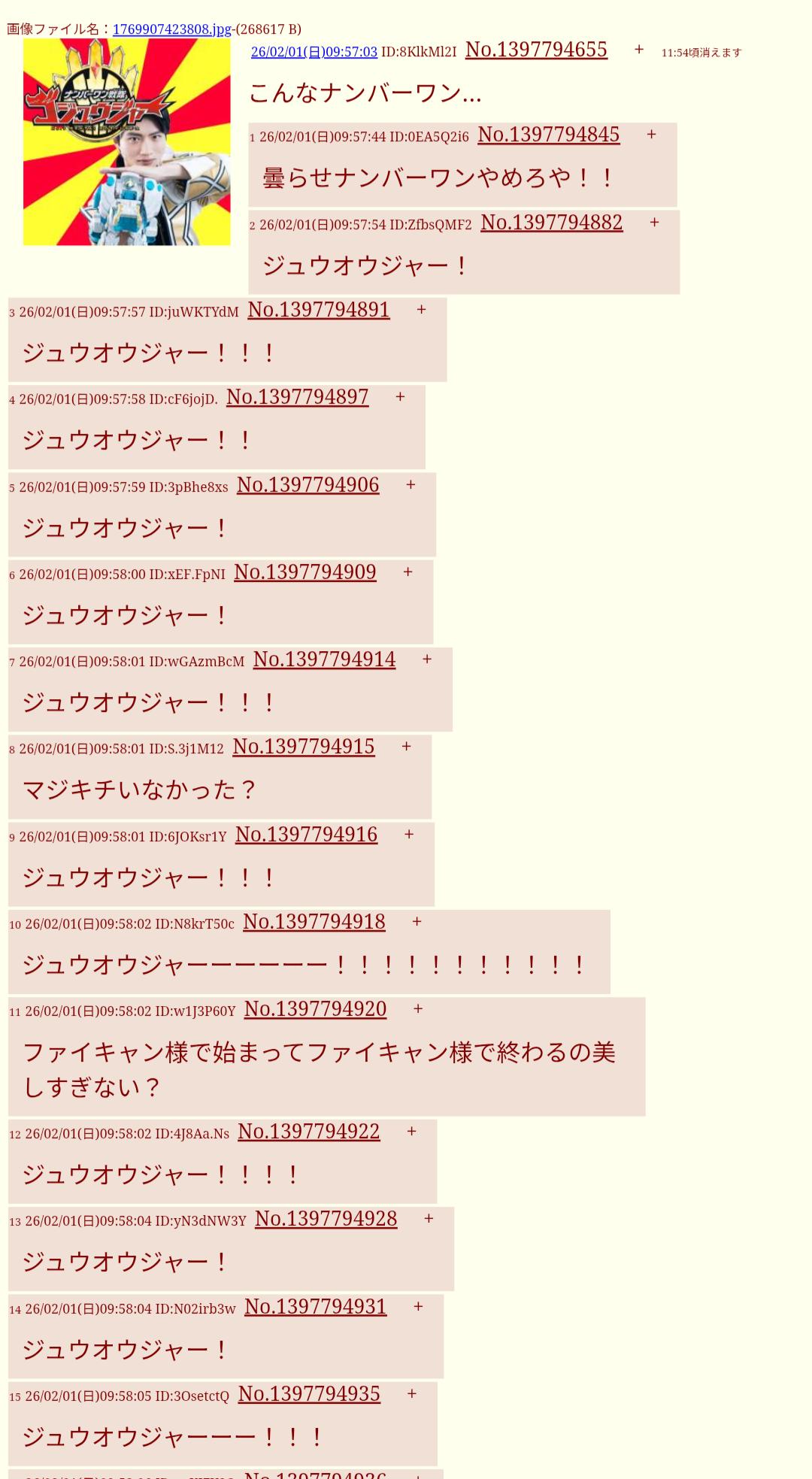 | … | 3026/02/01(日)09:58:16 ID:mf.6Bli.No.1397794984+ジュウオウジャー!! |