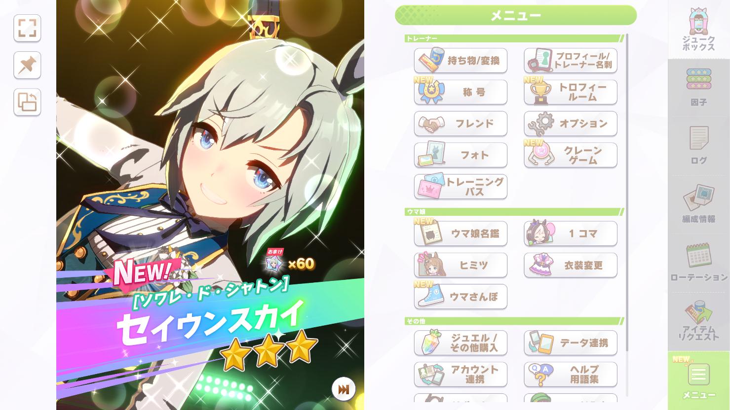 | … | 22626/02/01(日)11:20:59 ID:JRCMqgKcNo.1397812874+この頃だと継承で紅焔ギア付けるとマルゼンさんにギリギリ勝てる調整なのがとてもエモいと思いました |
