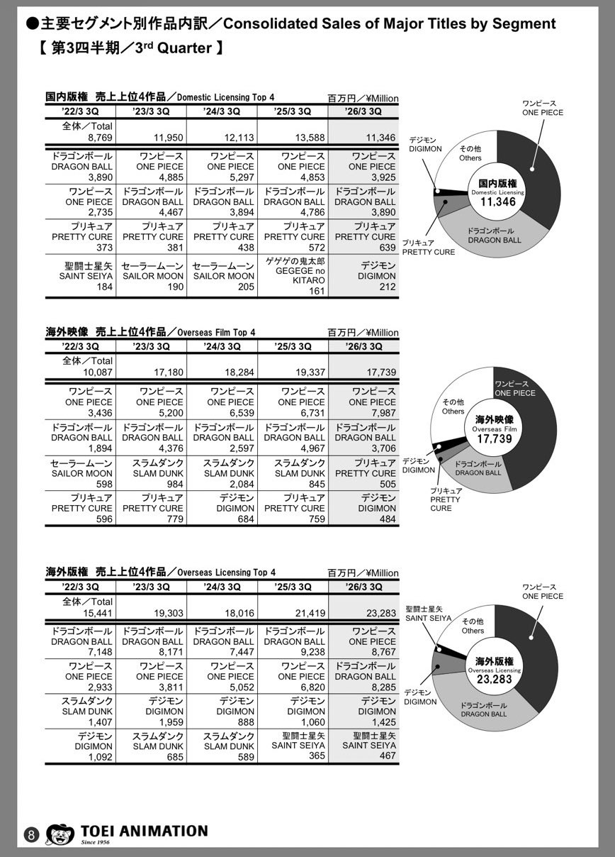 | … | 1126/02/01(日)10:31:10No.1397802378+海外だとドラゴンボールワンピースの次ぐらいには売れてるからすごいぞ! 国内だとプリキュアの三分の一ぐらいだが…… |