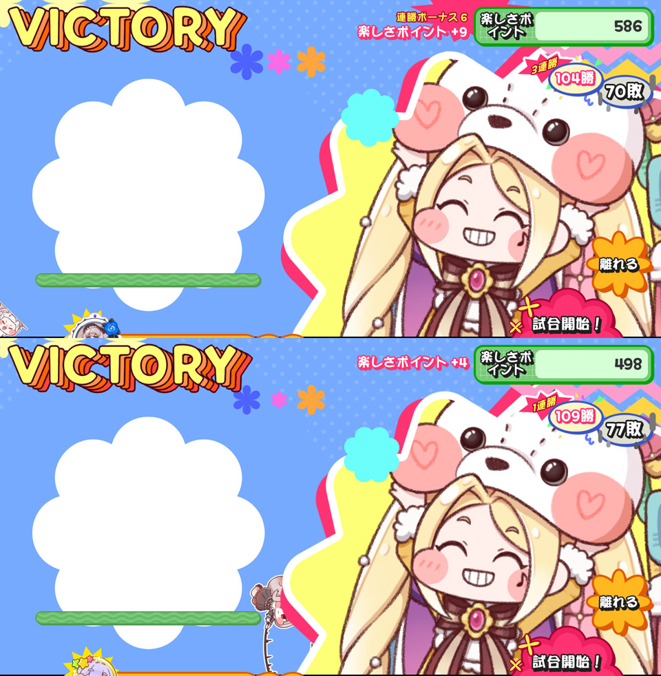 | … | 8426/02/01(日)14:09:10 ID:md3DbRuYNo.1397855492そうだねx2>あ...あ...あの...600付近だと連勝ボーナスないと3とか4しか上がらないにゃん... |