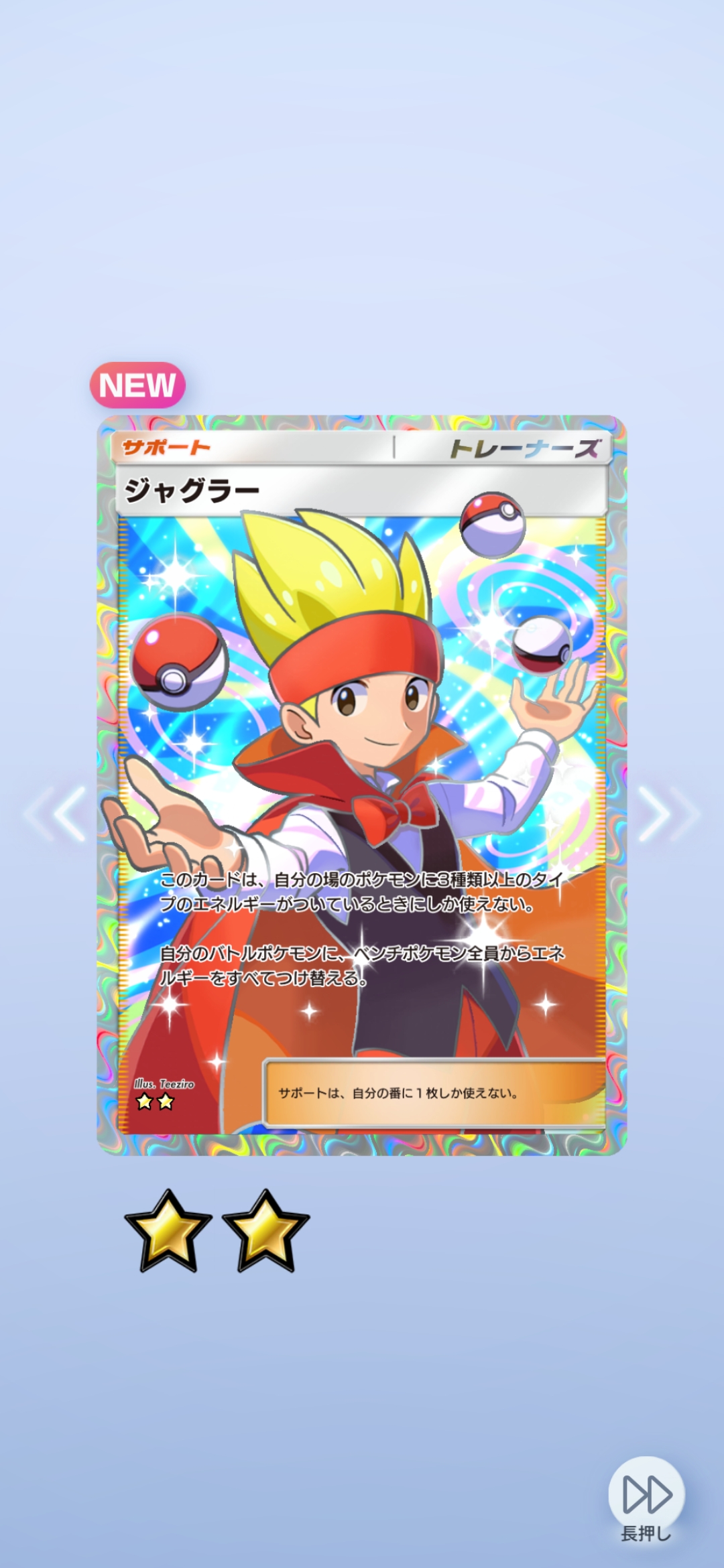 | … | 1226/02/01(日)15:38:32No.1397875961+>まだ引けていないけど俺が唯一引けそうな⭐︎2カードじゃないか!! |