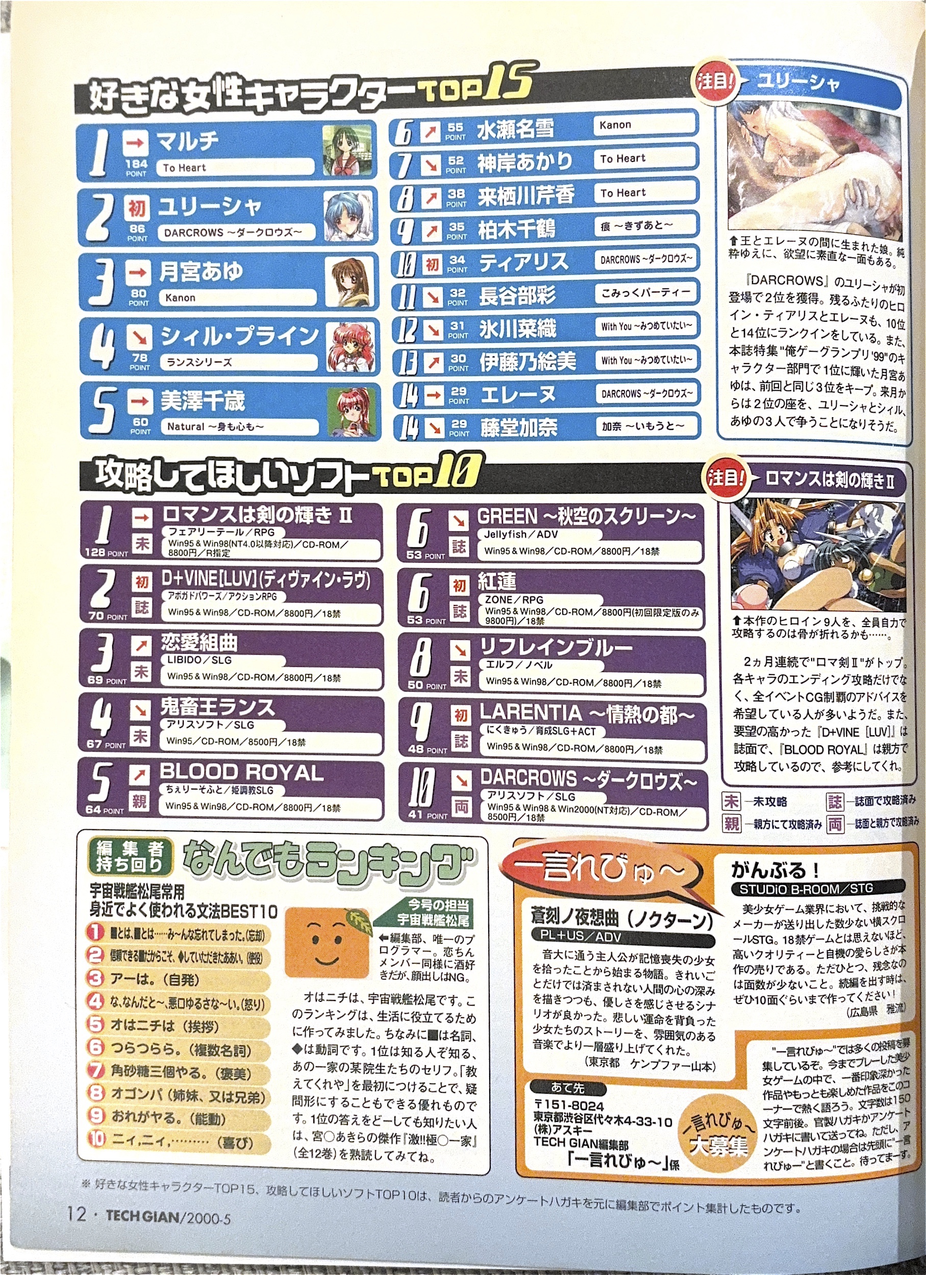 | … | 9726/02/01(日)19:56:58No.1397953234+>手元にあったテックジャイアン(2000年5月号)の人気投票 |