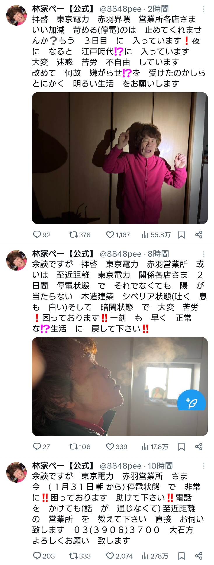 | … | 17926/02/01(日)21:02:50No.1397982495+つまり電気料金が支払えていない? |