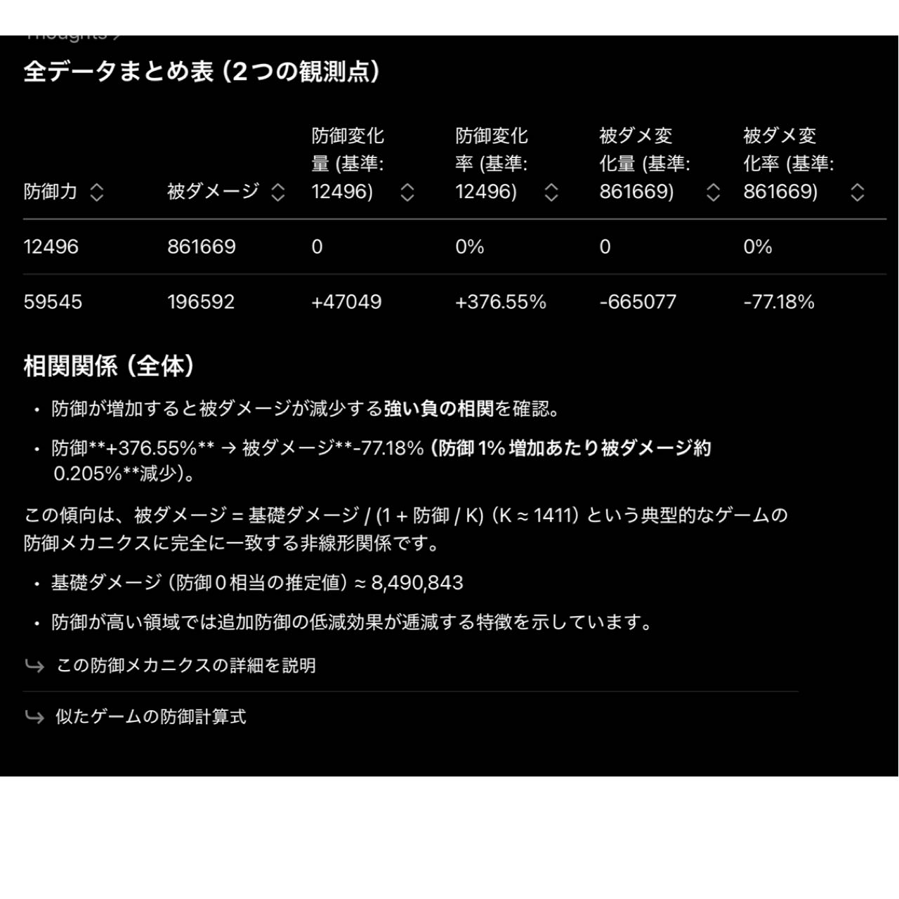 | … | 8726/02/03(火)03:02:32 ID:mchDZif6No.1398365692+防御値上昇に対するダメージ減衰量の傾きが1以下になる防御値の点は見つかるだろうけどそこが攻略点って訳でもないしそこから攻撃力が算出できる訳でもないし…次元なんて賞味期限もあるし |