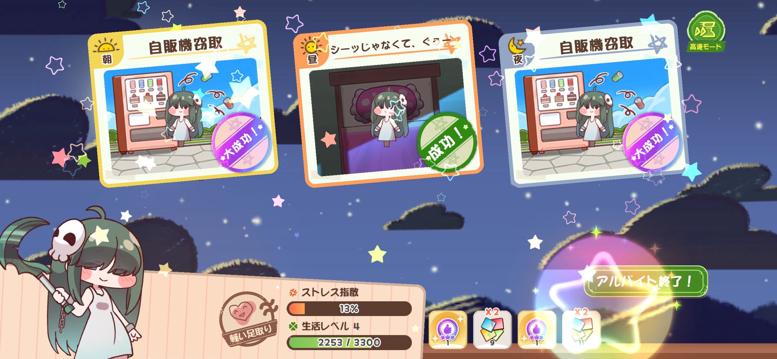 | … | 42526/02/03(火)08:41:09 ID:HseYSHPgNo.1398382721+>生活レベルの経験値が貴重すぎてレベル5になった子をバイトに出すのもったいなく感じちゃうにゃん… |