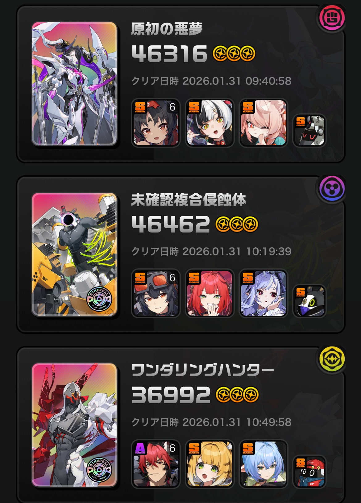 | … | 6526/02/03(火)12:13:30No.1398417268+うちの最新撃破はトリガーさんだからユウちゃん楽しみンナ〜 |