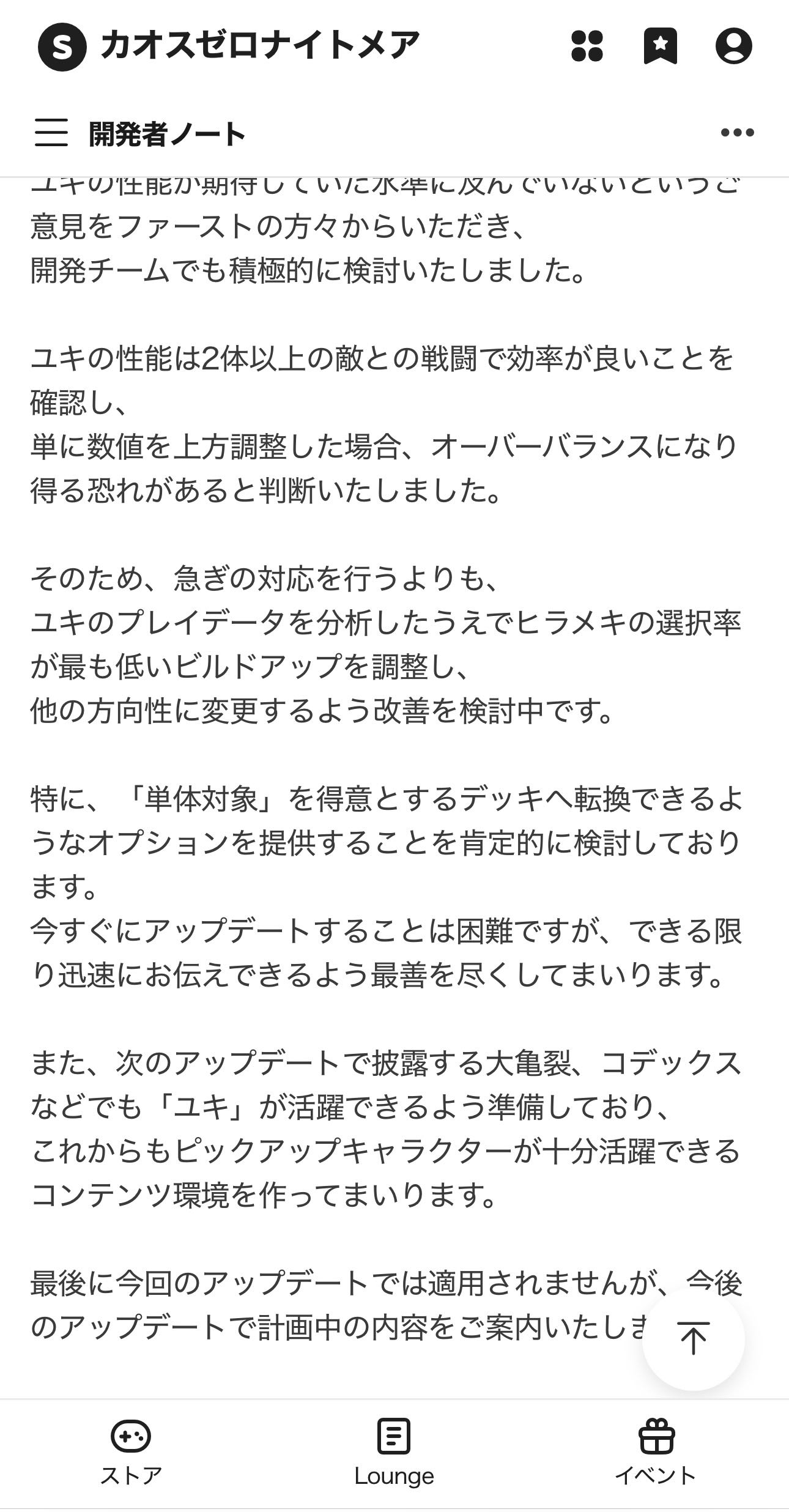 ユキは数値上がってるのはいいけど使用感変わるような調整はあんま無いんだな