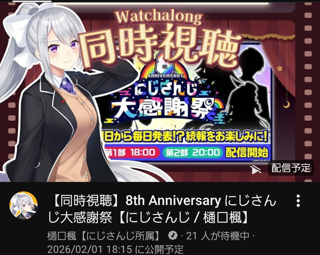 | … | 5926/02/04(水)00:16:34No.1398606823+>1番のツッコミどころはにじさんじの日とかいうのをわざわざ記念日設定にしたのにそこからずれて1日に配信してるとこだろ |