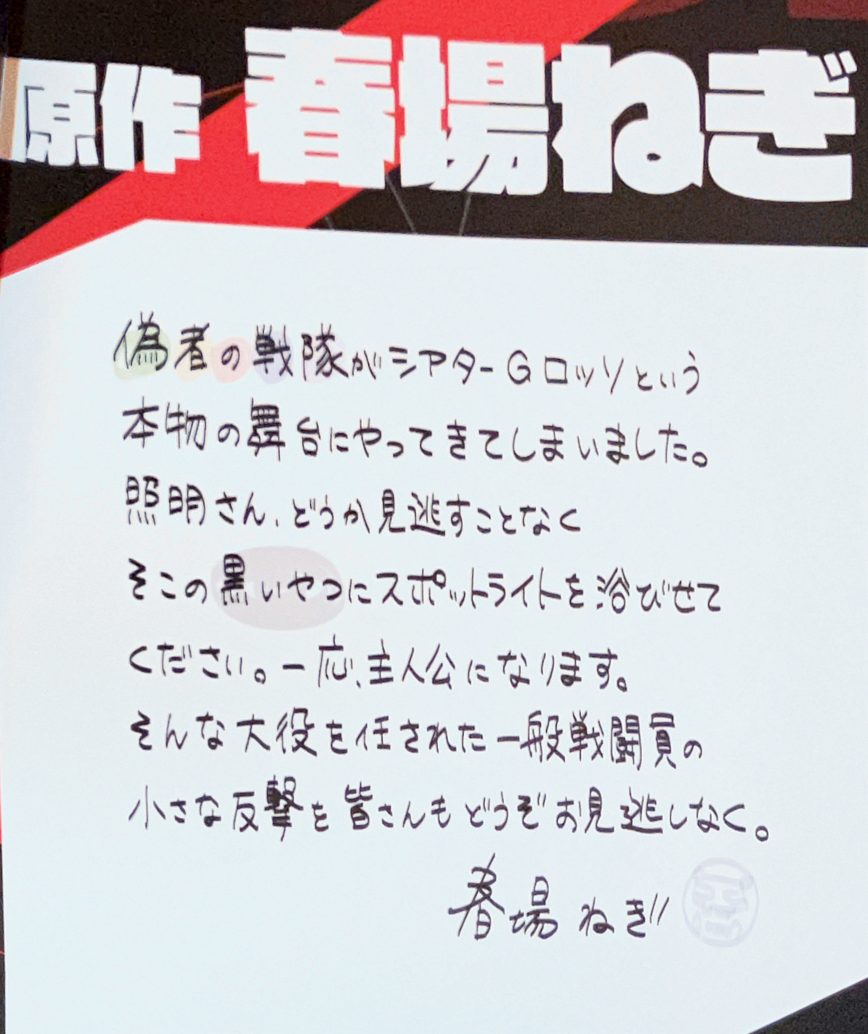 | … | 3126/02/04(水)00:41:16No.1398613501+舞台版パンフのねぎ先生コメ |