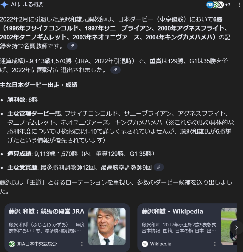 | … | 5326/02/04(水)13:00:30No.1398698566+>>フジさん(藤沢和雄元調教師) |
