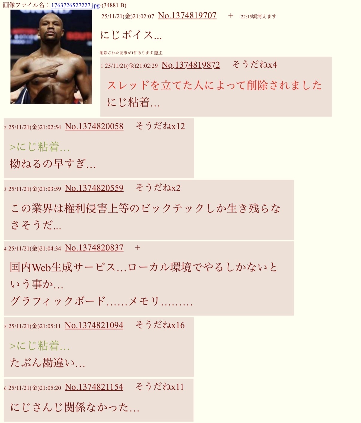 | … | 46126/02/04(水)21:35:25No.1398831221そうだねx6>ID:VHYzPBWM |