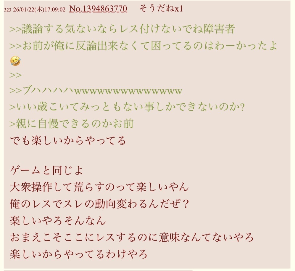 | … | 9326/02/04(水)20:37:28No.1398809823そうだねx6ハヤトが擦りつけだけでなく雑な対立煽りもやってるの皆知ってるし… |