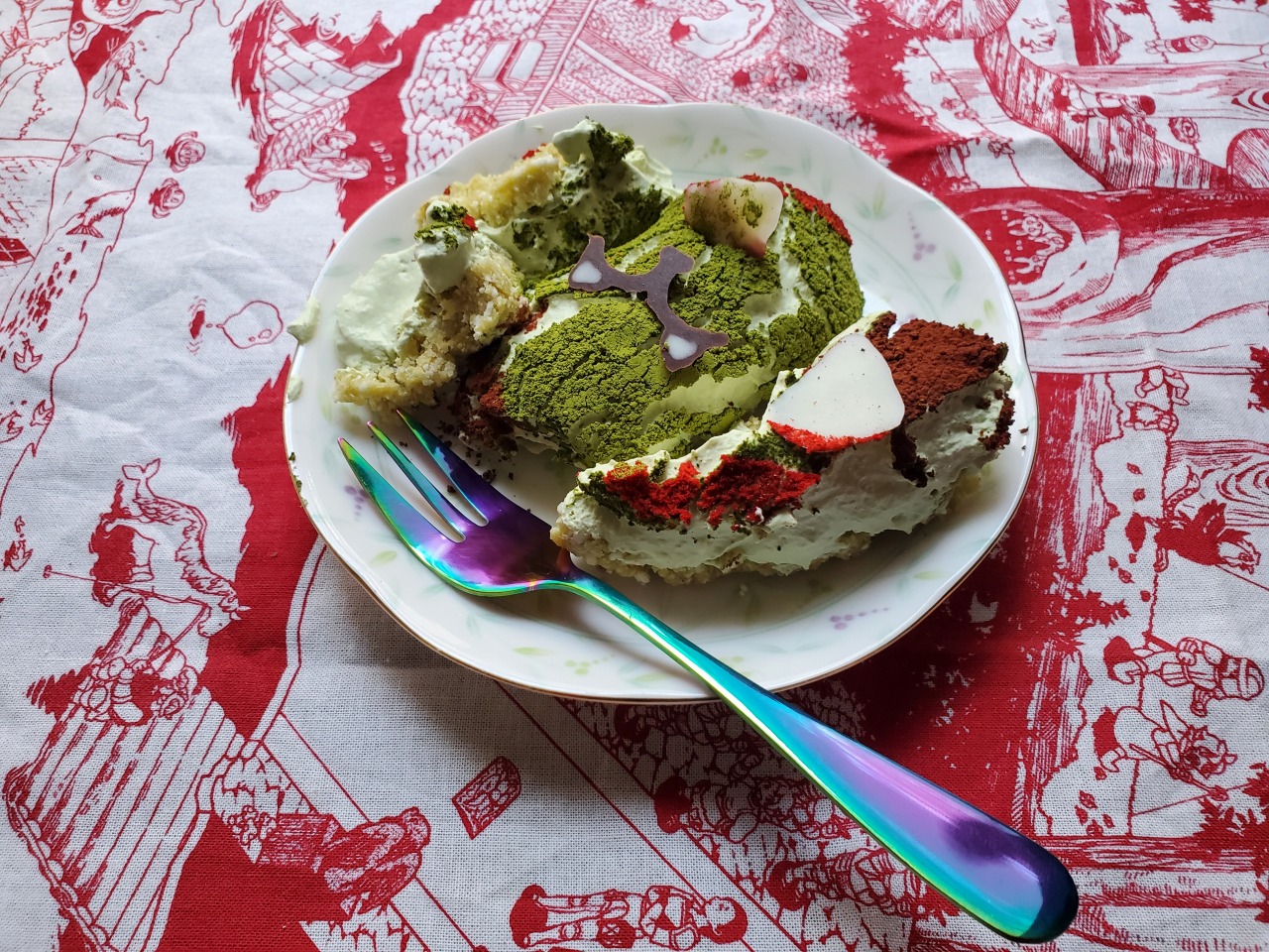 | … | 4326/02/04(水)21:37:49No.1398832200+>なんとなくアドリブでクリーム部分に抹茶入れたのですが全体的に抹茶抹茶してて美味しかったです |