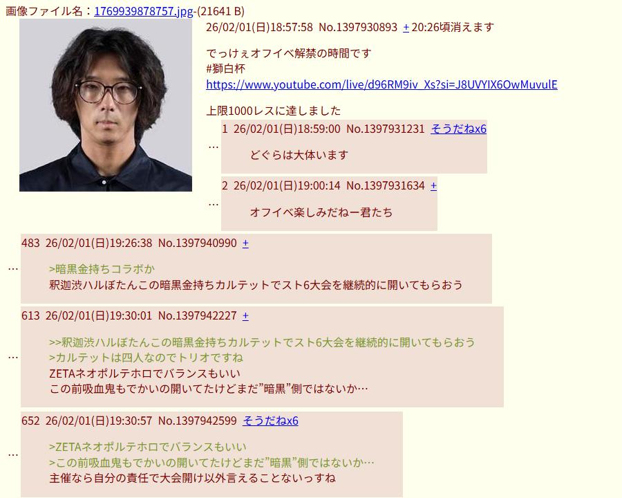 | … | 1226/02/05(木)00:30:43No.1398891512+>スレ画の人ってそもそも格ゲーの大会でがっつりプロとチーム組んだりしてただろ |