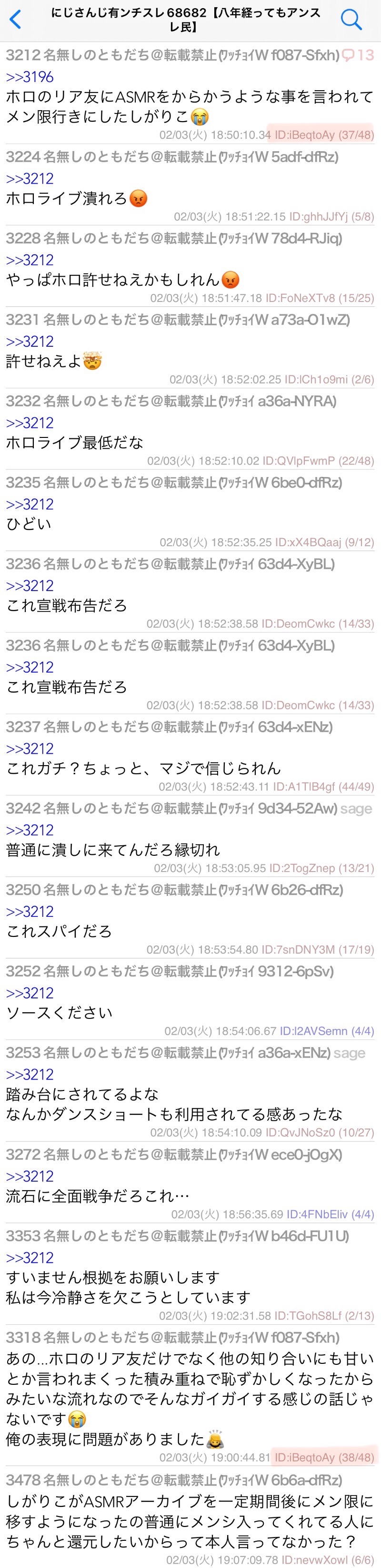 | … | 49826/02/05(木)02:56:20No.1398912311そうだねx1>それなのにえにからは攻撃してるのは一部のファンって言ってるからな |