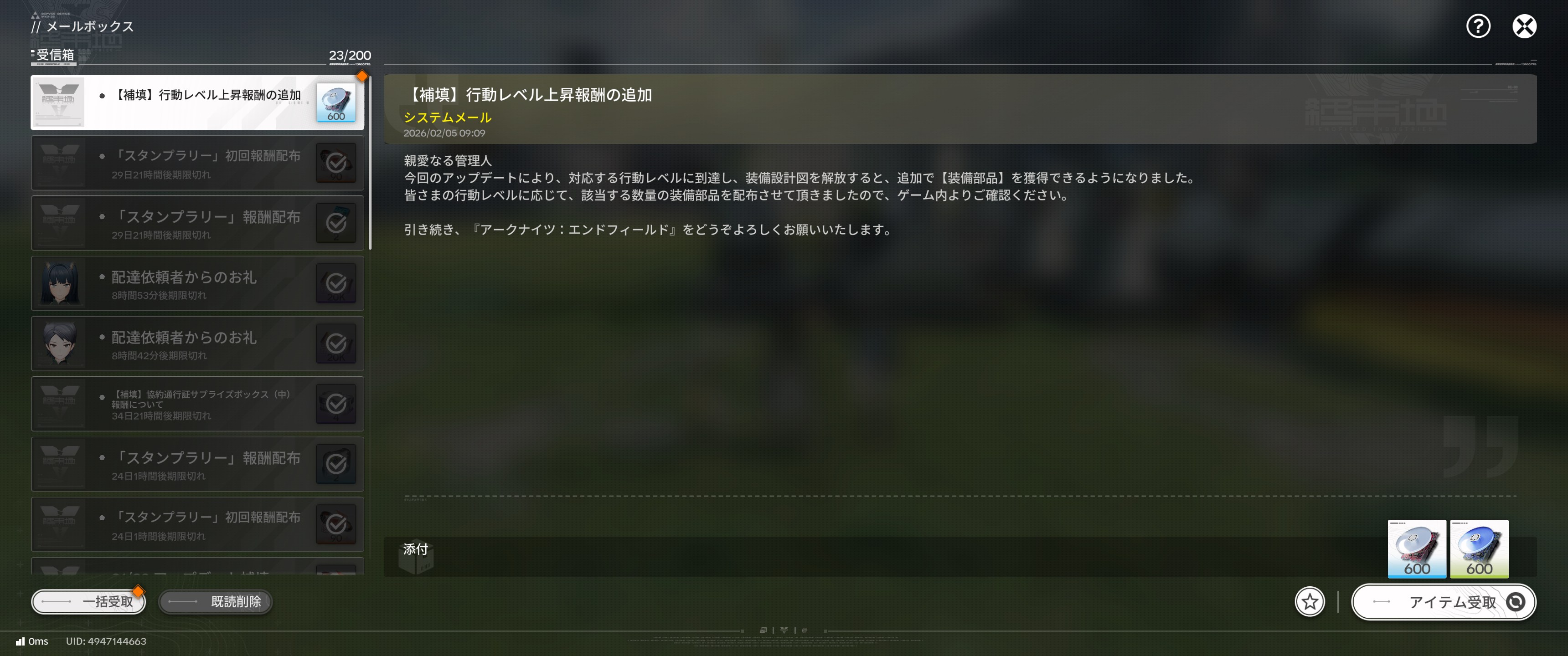 | … | 58026/02/05(木)10:28:52 ID:aoe6L9mANo.1398947199+>メールで来た補填の装備部品受け取れないんだけど! |