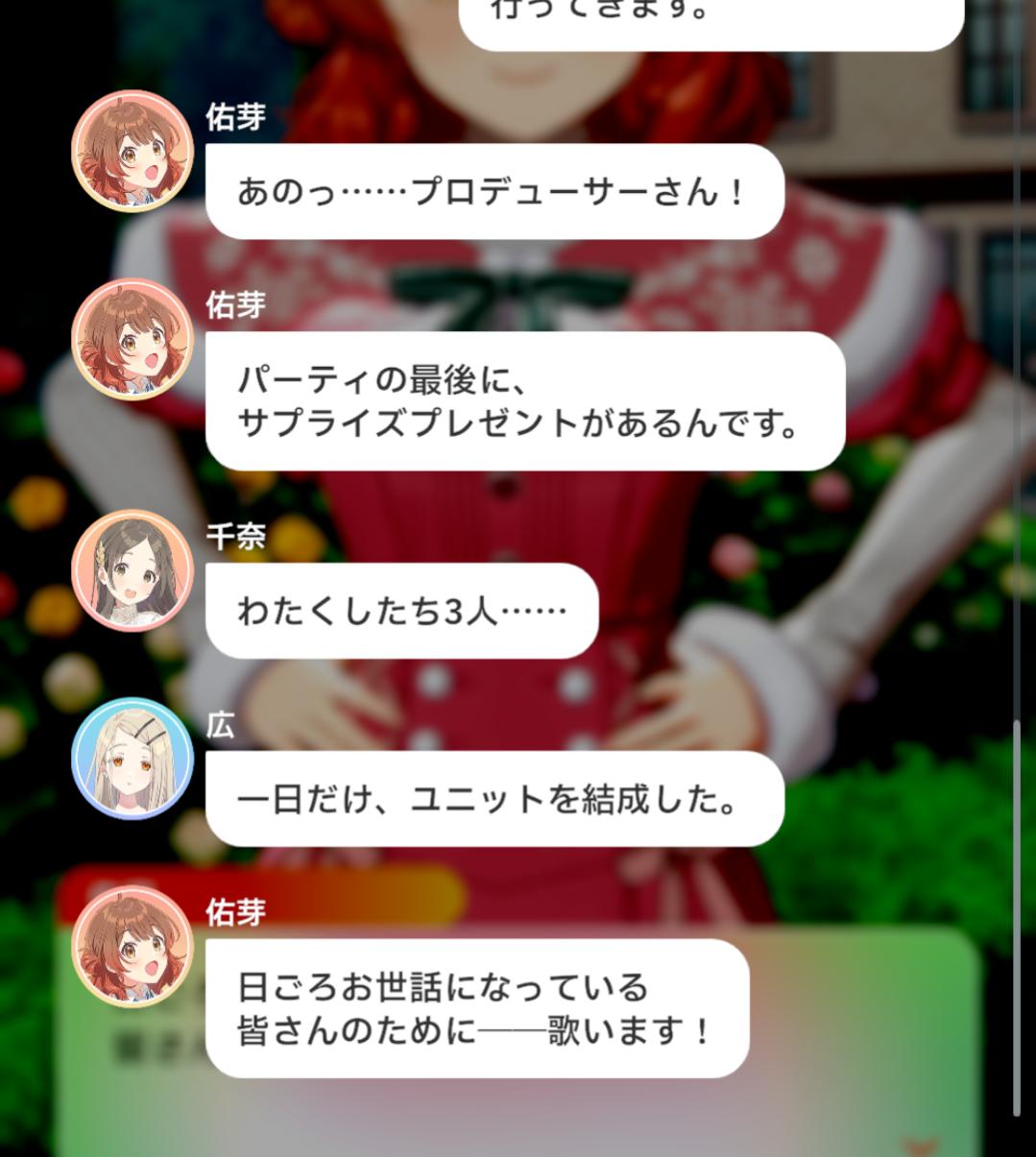 >クリスマスに補修組でユニット組む話とかありましたっけ…マジで記憶にないですわ