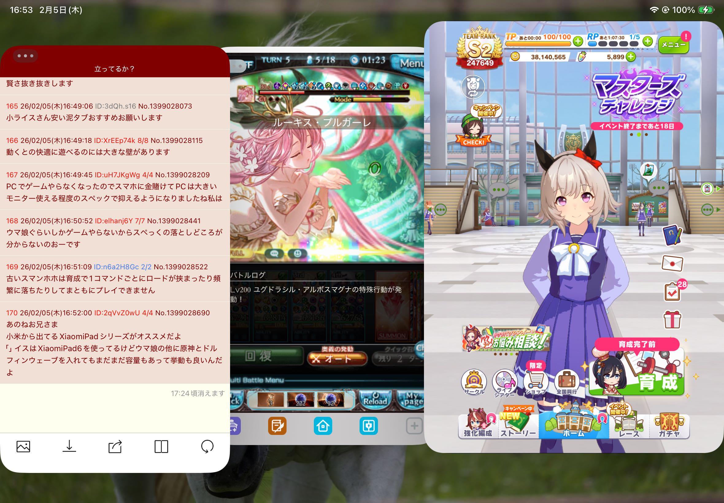 | … | 17326/02/05(木)16:54:31 ID:5nLlkRWsNo.1399029226+そういえばiPadも横向きでマルチでウマ娘出来るようになったんですね |