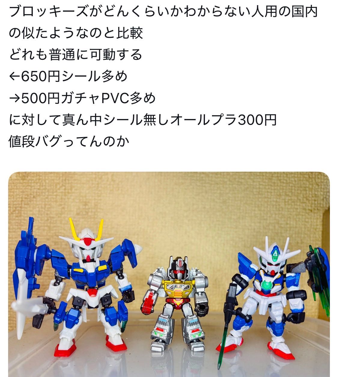 | … | 13826/02/05(木)21:07:06No.1399103243+ブロッキーズもガチャでしかも封入率エグいシークレット商法なのにこんな比較されても |