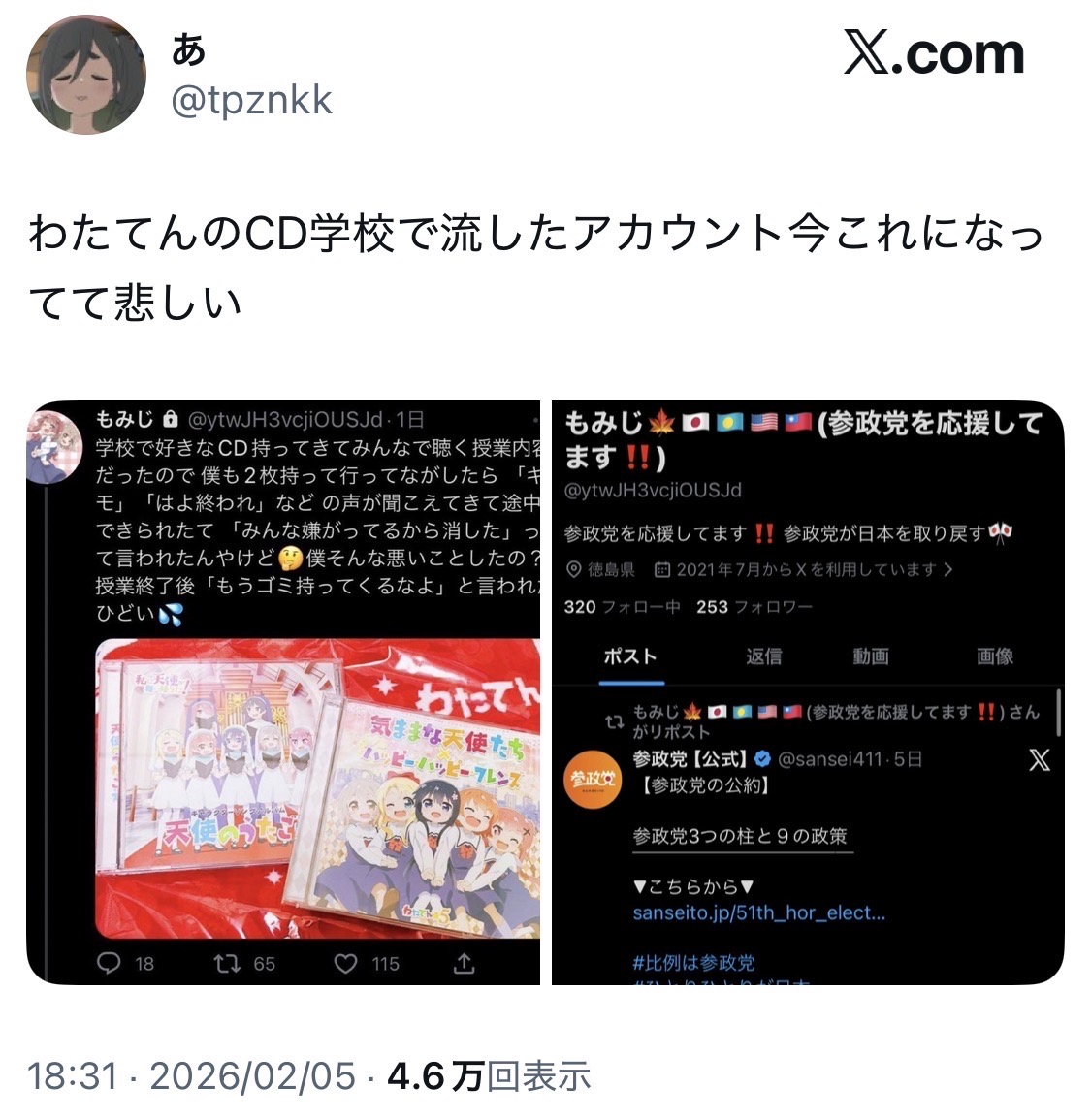 >参政党だけが彼とわたてんいいよね…してくれたんでしょ