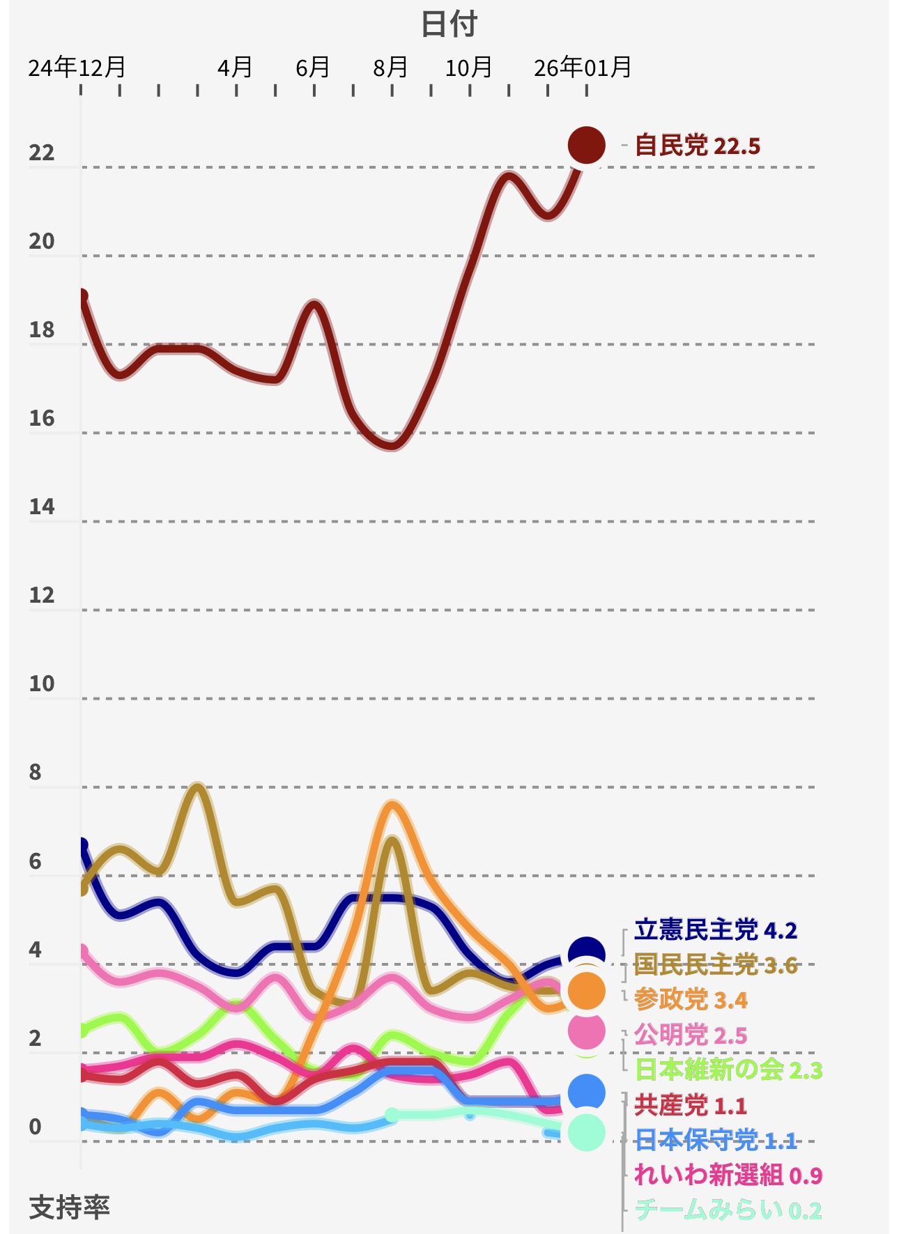 参政党ってカルト扱いされてるけど割と上らへんの支持率獲得してるやん